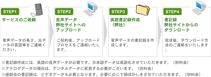 "Assist Foreign Language Transcription Services" uses the internet and our global network to provide foreign language transcripts of Japanese meetings more quickly and at lower cost.